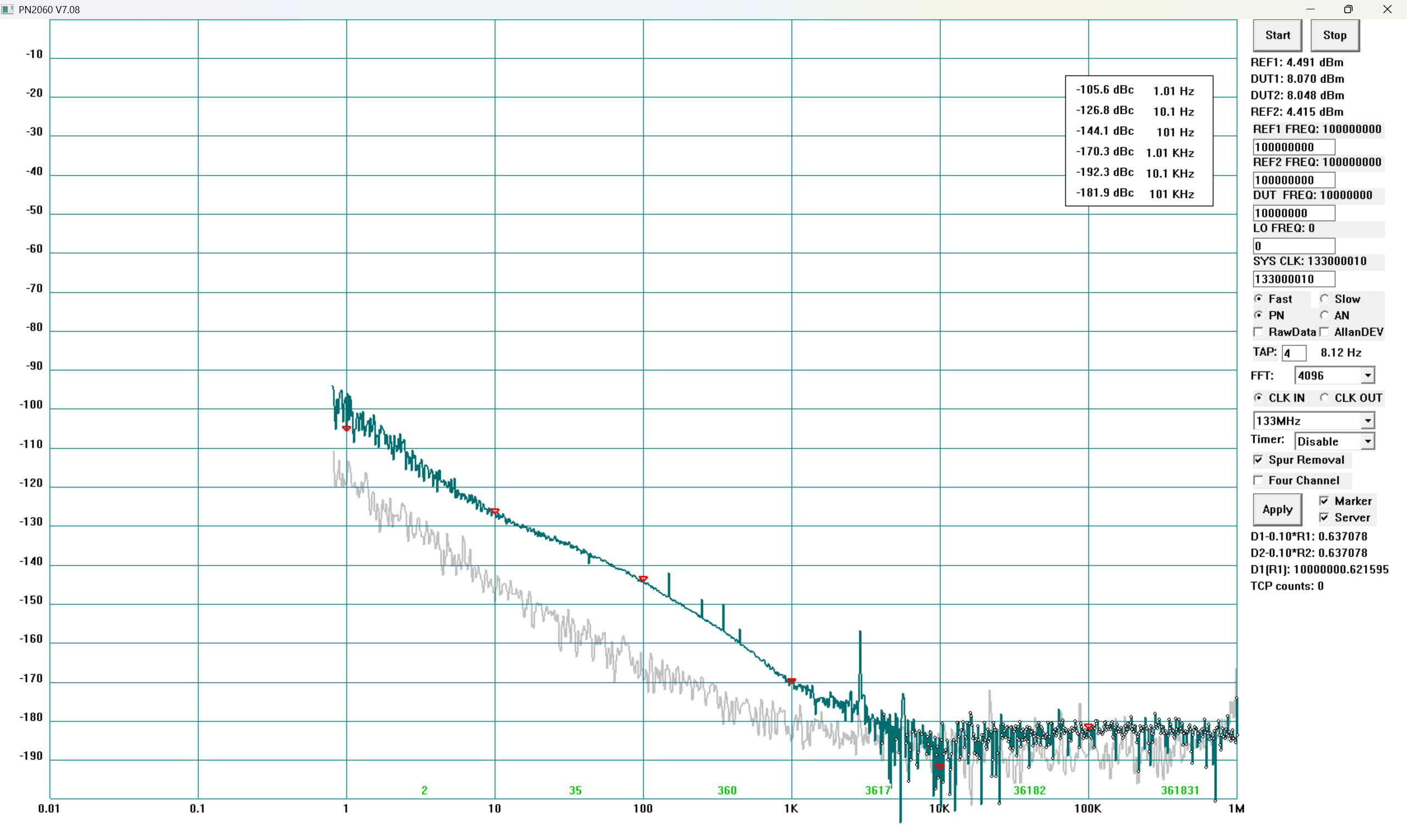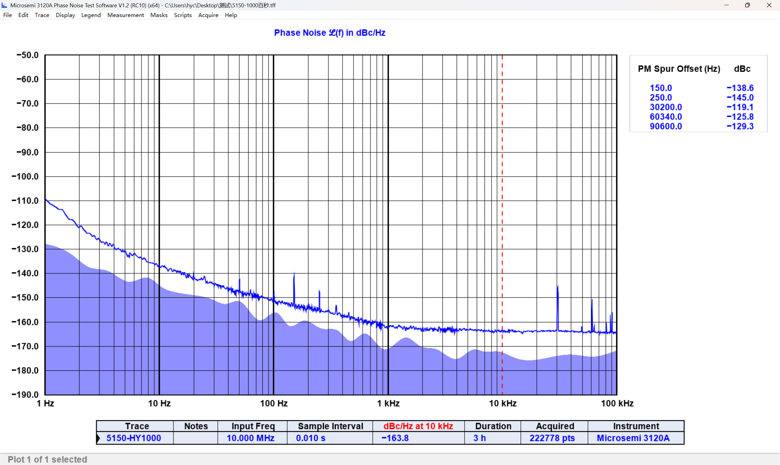 附图三:相位噪声实测结果(左路)